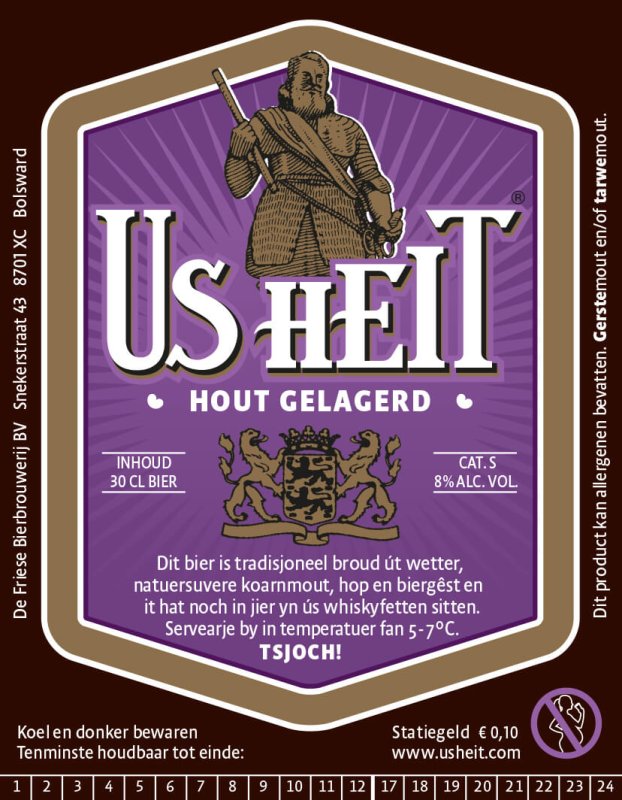 Het Us Heit houtgelagerd bier wordt gemaakt van een zwaar bier. Dit wordt 1 jaar lang gerijpt in een eigen gebruikt whiskyvat, waardoor het bier een mooie smaakontwikkeling doormaakt.