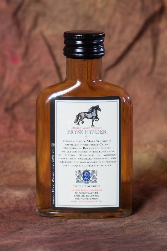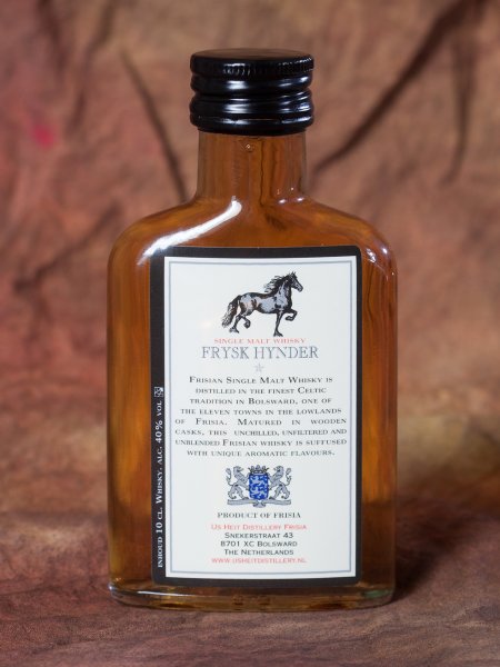 Frysk Hynder is een Single malt whisky, ons whisky bier is afgestookt tot Spirit. Deze spirit wordt vervolgens minimaal 3 jaar in gebruikte vaten gerijpt zoals rode wijnvaten, Sherryvaten, Port of cognac vaten. Op dit moment is deze drie jaar oude whisky gerijpt op rode wijnvaten en bevat 40% alcohol.